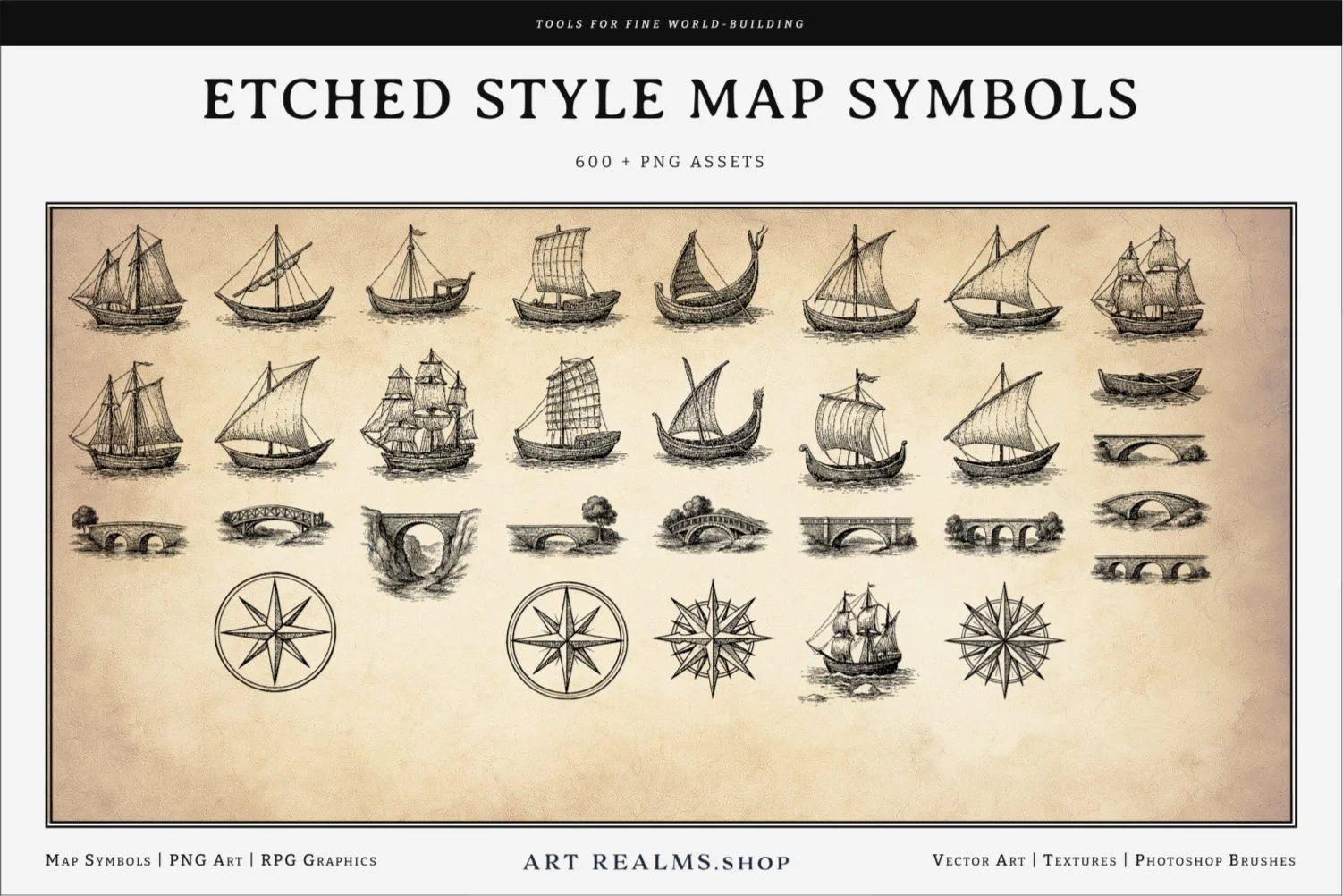 Ideal for game designers, storytellers, and cartography enthusiasts, these symbols are versatile enough to fit any map's theme, from dark, mysterious realms to classic high fantasy settings. Whether you're depicting treacherous terrains or serene landscapes, these symbols will add depth and detail to your maps.